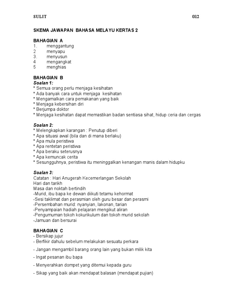 Skema Jawapan Bahasa Melayu Kertas 2 Tahun 5 Pdf